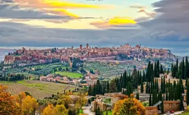 Departure at 8:30 a.m. to allow the arrival at the winery around 10:30 a.m., where a full wine experience awaits you. Escorted by the owner in person or by a professional you will visit the vineyards, the area of production and aging rooms before sitting for tastings and lunch. In the summer the lunch with tastings will be outdoors under a characteristic Umbrian portico or in the garden while in the winter it will be in the elegantly furnished tasting room. The early light lunch will include a tasting of their own olive oil, a classic Umbrian cheese and cured meat platter served with local bread, and a traditional first course, depending on the season: umbrichelli pasta with black truffle, a vegetable lasagna, or a classic meat lasagna. Dessert will include Tozzetti biscuits with grappa or amaro.